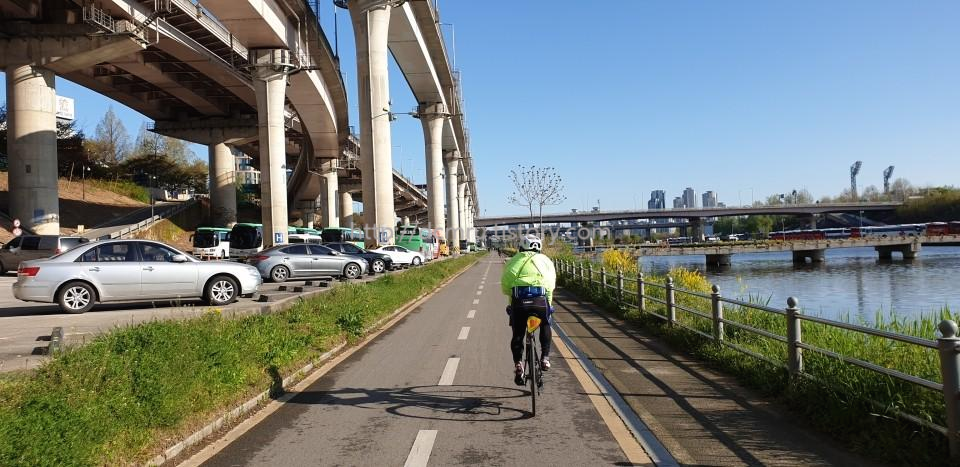 도로 옆 자전거길이 있어 달리는데, 부산물질이 많다.