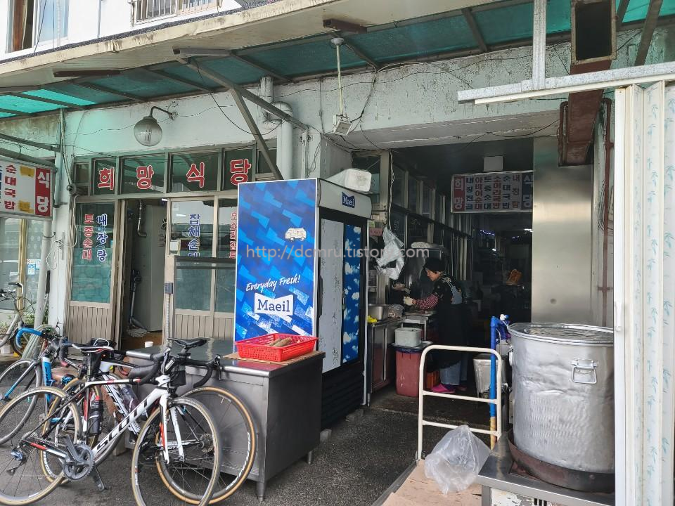 조금만 더가면 상주시내를 벗어 나는 상황이어서 시내 끝에 보이는 식당으로 겨우 들어 갔다.